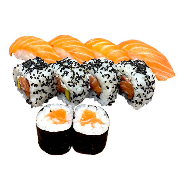4 nigiri sake, 4 uramaki philadelphia e 2 hosomaki sake