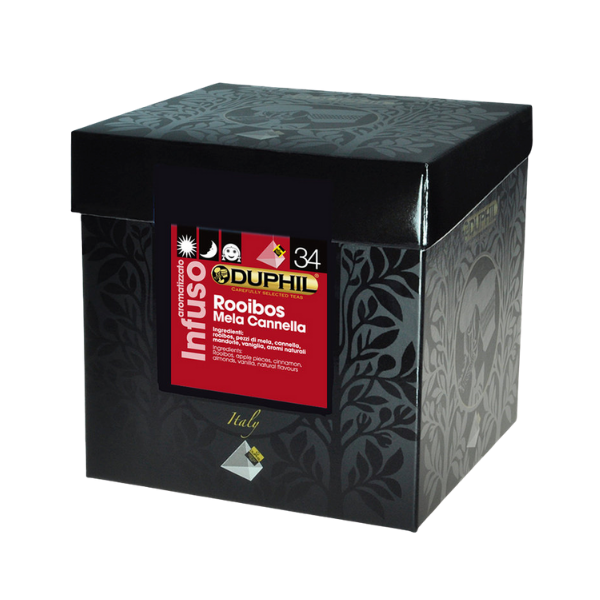 Rooibos, pezzi di mela, cannella, mandorle e vaniglia